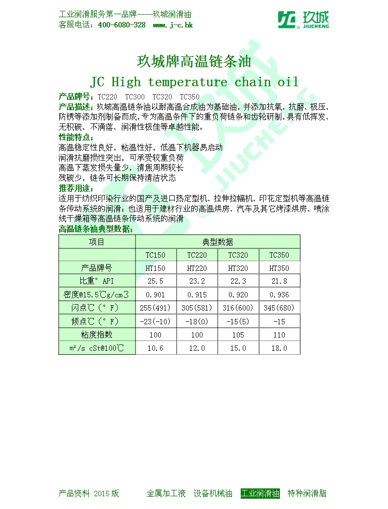 玖城牌高温链条油 TC220 TC300 TC320 TC350