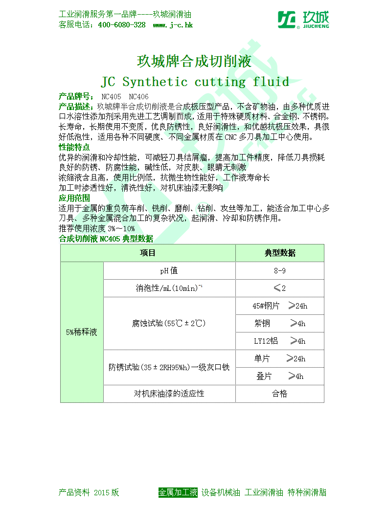 玖城牌合成切削液 NC405 NC406