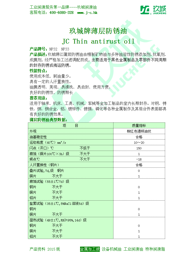 玖城牌薄层防锈油 NP32 NP33